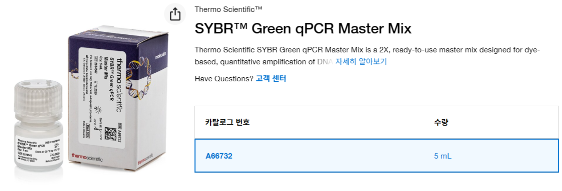 제품 싸이트 : SYBR™ Green qPCR Master Mix 5 mL | Buy Online | Thermo Scientific™ | thermofisher.com