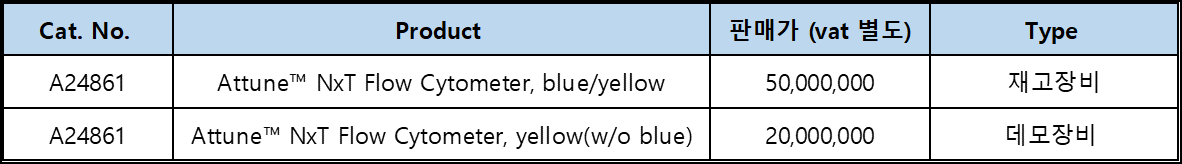 재고장비와 데모로 사용하던 attune 장비에 대해 큰 폭 할인으로 판매 진행합니다.